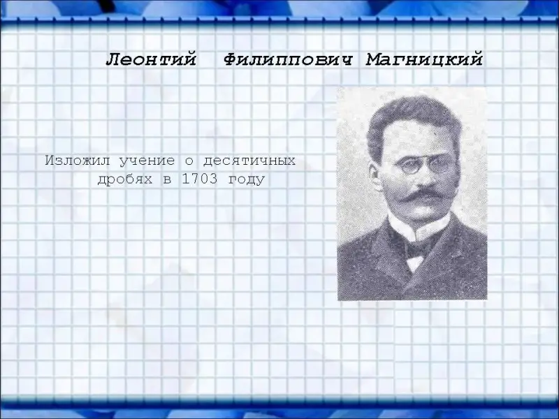 Сообщение учащегося или учитель сам рассказывает из истории десятичных дробей.