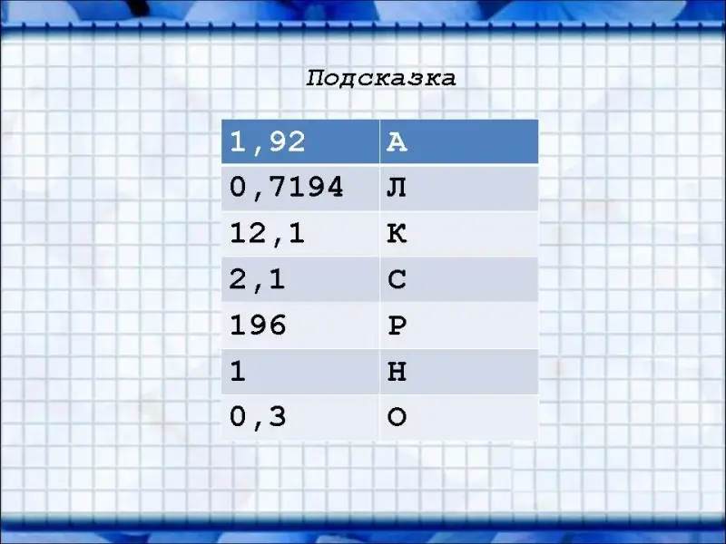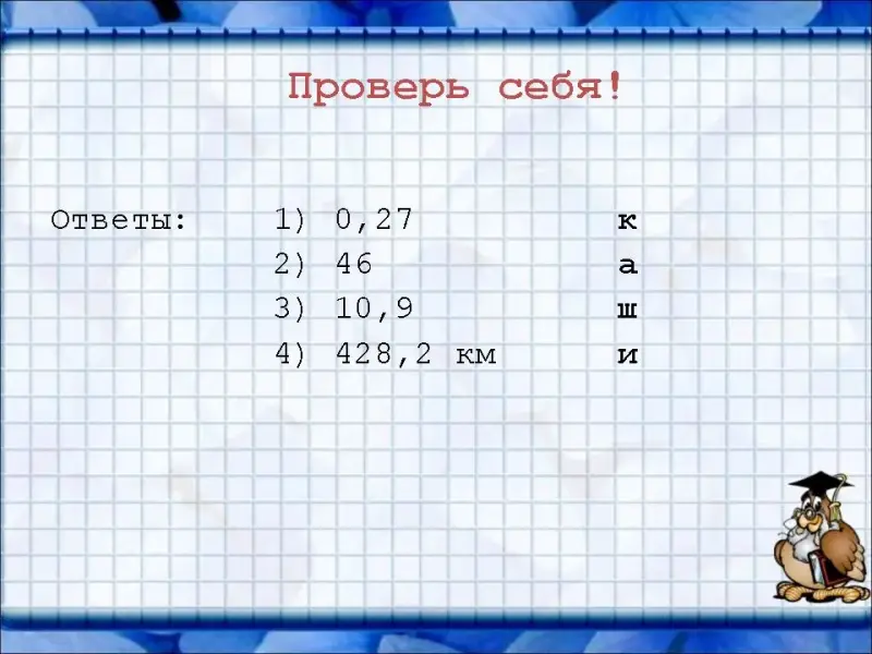 1. К 2. А 3. Ш 4. И (слайд 7)