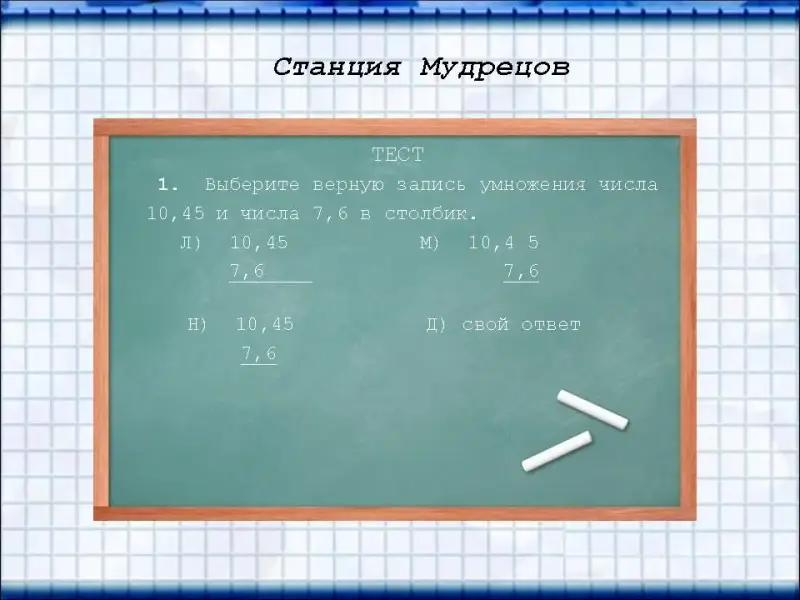 Выберите верную запись умножения числа 10,45 и числа 7,6 в столбик.