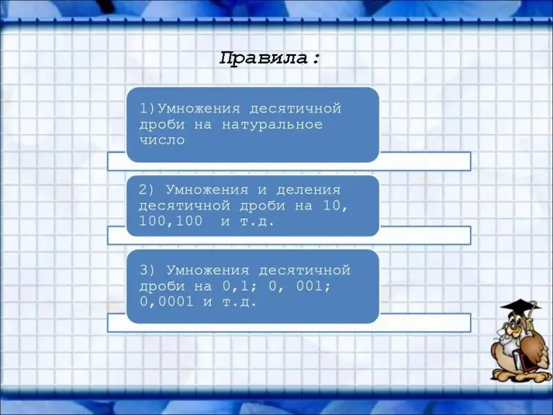 - Умножения и деления десятичной дроби на 10, 100, 100 и т.д.