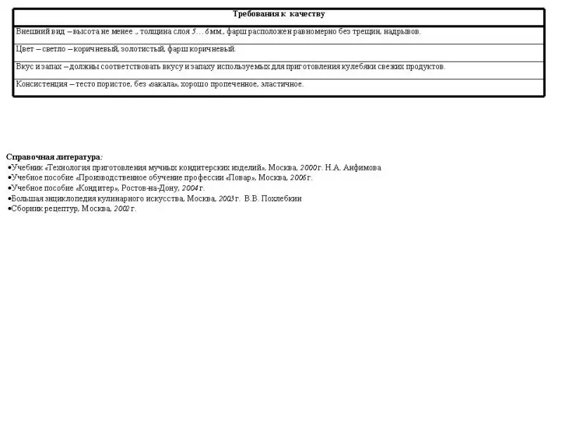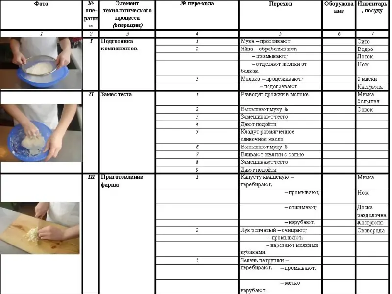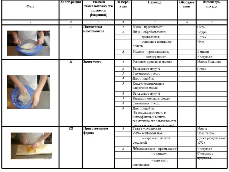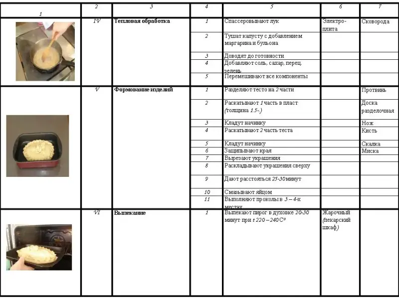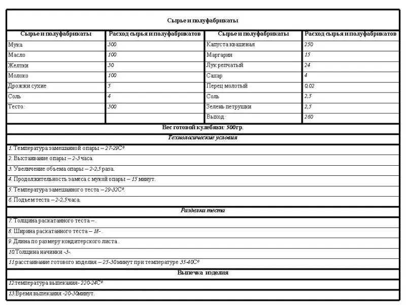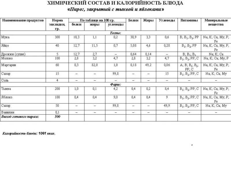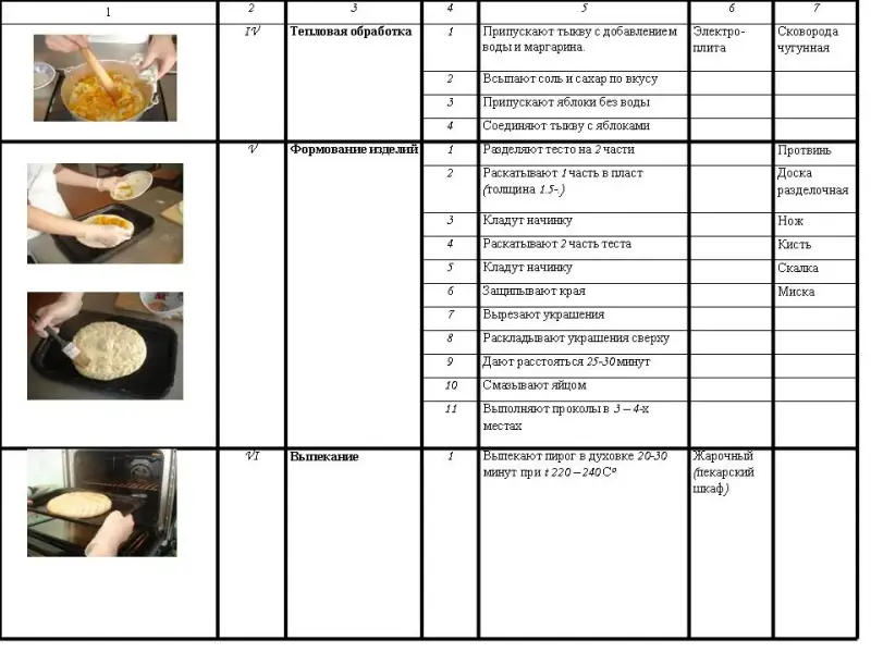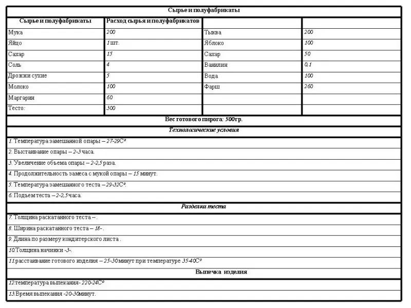 Опорный материал: технологические карты изделий “Кулебяка с квашеной капустой” и “Пирог, закрытый с тыквой и яблоками”, а так же карта “Пищевая ценность блюда”.