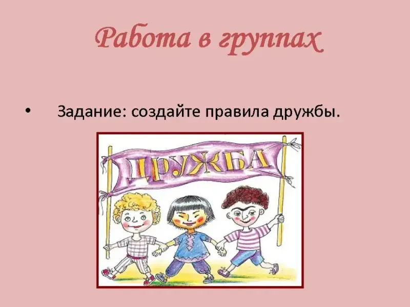 Учитель: Давайте с вами попробуем открыть секреты дружбы. Поработайте в группах и создайте правила дружбы.
