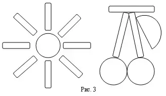 терпеливо, настойчиво, проявляют наблюдательность, фантазию. В результате они складывают очень выразительные силуэты, например солнышко и вишенки (рис. 3).