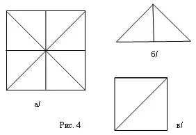 2. Возьмите 2 маленьких треугольника и составьте из них квадрат (рис. 4, в). Сколько таких квадратов получится из 8 деталей игры?
