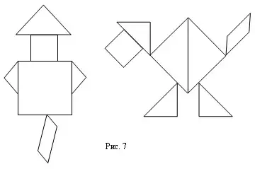 Составить фигуру из всех частей квадрата бывает трудно не только ребенку 8-9 лет, но и взрослому человеку, поэтому в этой игре важно не оставлять ученика без педагогического руководства. Учитель должен направлять игру ребенка, показывая образец действий и рассуждений, приводящих к желаемому результату и побуждающих детей вступить в игру. При Этом важно учитывать индивидуальные особенности детей; одних - похвалить, других - ободрить, третьим - помочь, подсказать.