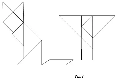На внеклассных занятиях по математике можно усложнять задания, предлагая составлять фигуры по контурному рисунку (рис. 5), и самим придумывать новые силуэты.
