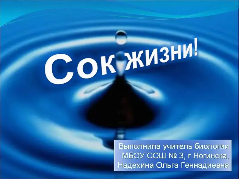- Сегодня на уроке мы определим, что является «Соком жизни»