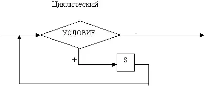 Циклический тип алгоритма, как и ветвящийся имеет более сложную, относительно линейного типа, структуру, так как в теле цикла имеет линейный блок, в частности - это вспомогательный алгоритм, но в любом случае - это сложный шаг алгоритма.
