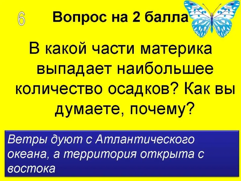 Команды по очереди выбирают цвет и номер вопроса. Появляется вопрос, на который нужно ответить команде, вопросы оцениваются по сложности от 1 до 3 баллов. Например: вопрос синий цвет 2, появляется вопрос на 3 балла или желтый цвет 3, появляется вопрос на 1 балл, ответив правильно, команда получает эти баллы в свою копилку.
