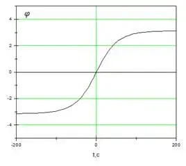 . При t = 0 грузик маятника проходит нижнее положение равновесия, асимптотически приближаясь с бесконечно малой скоростью к неустойчивому положению