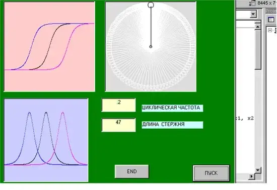 Ввиду того, что солитоны очень интересные объекты, нами была создана программа солитонного движения кругового маятника на интерактивном языке программирования Visual Basic, который изучается в школе на уроках информатики *). На рис. 7 приведен интерфейс этой физической модели.