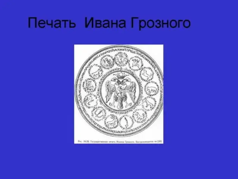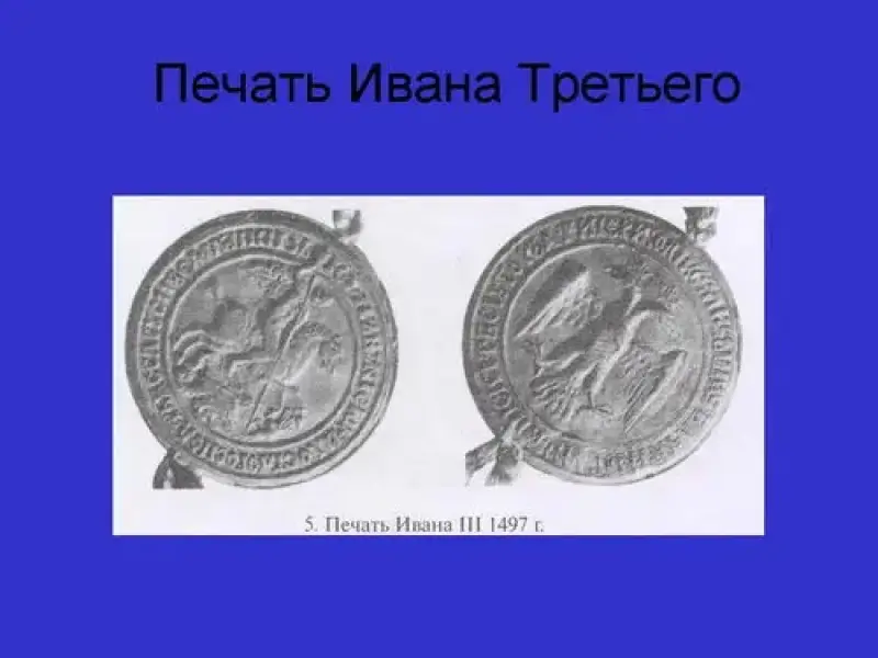 Первый государственный герб России появился в конце XV века. В период правления Ивана Ш Васильевича появляется главная составная часть герба России - двуглавый орел (слайд). В 1472 году Иван Ш заключил брак с наследницей Византийского престола царевной Софьей (Зоей) Палелог. Родовым гербом Византийского государства был двуглавый орел, который символизировал Двуглавую Римско-Византийскую империю, охватывавшую Восток и Запад. И именно он был изображен на стяге, который везли впереди свадебного поезда цесаревны. Иван Ш воспринял это как великую честь (возможность встать рядом со всеми иными европейскими государствами) и принял герб как символ государства. Таким образом, двуглавый орел прилетел на русскую землю из Византии.