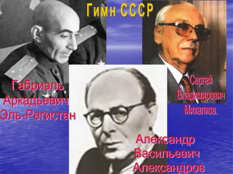 - "Гимн СССР" - слова С.Михалкова и Габриэль Аркадьевич Эль-Регистана, музыка - А.В.Александрова.