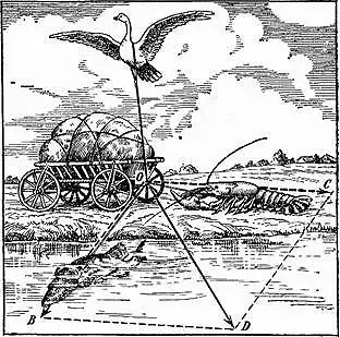 Рак пятится назад, а Щука тянет в воду.