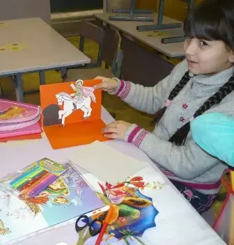 2. О.П.н. - Этическая беседа "Родная природа"; - Изготовление Георгиевской ленточки; 3. Э.Х.н.: - Изготовление динамической открытки "Воин чудесный на белом коне"; - Музыкально-игровое занятие: "На заставе богатырской"; 4. С.О.н. Спортивные состязания: "Не перевелись богатыри на земле русской". |