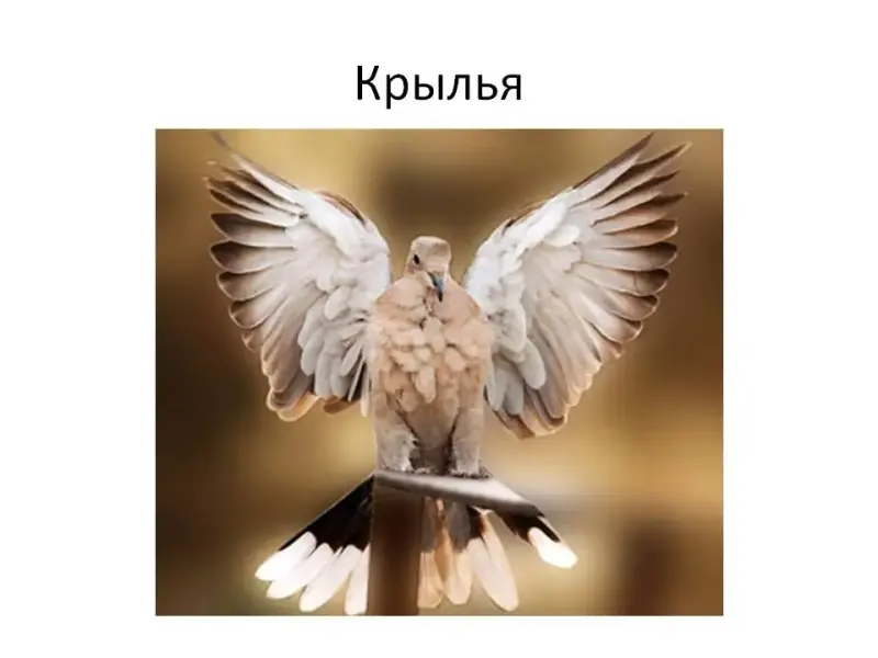 Крылья поднимают птицу в воздух. Птицы машут крыльями и летят. У птиц, живущих в лесу (рябчиков, глухарей, синиц, дятлов), крылья широкие и короткие, с такими крыльями удобно летать среди густых ветвей. А у птиц, которые далеко и быстро летают (стрижей, ласточек), крылья узенькие и длинные.