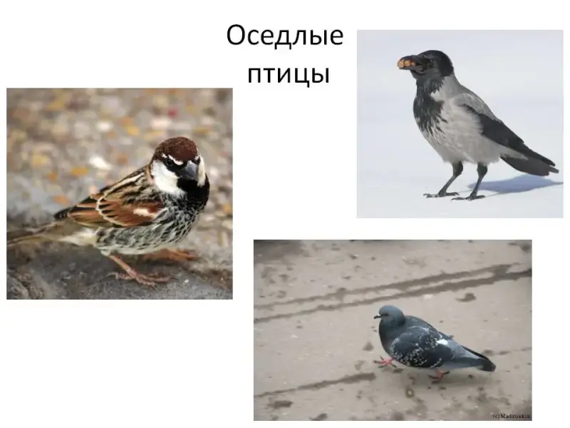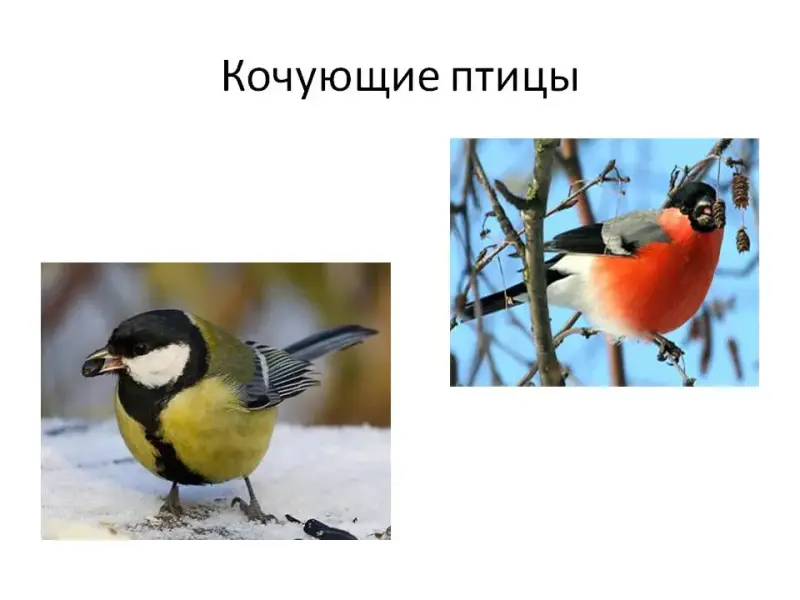 - Кочующие: синицы, дятлы, снегири, клесты, свиристели.
