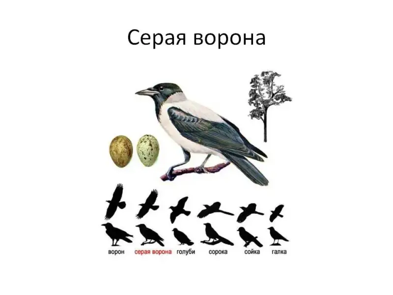 Серая ворона известна всем. Ворона всеядна. Она наш постоянный спутник в городе. В неволе ее легко приручить. Вороны уничтожают грызунов в больших количествах, подбирают падалицу растений (плоды, семена). Вороны - санитары города. Гнездо строят из сучьев. Зимой вороны приближаются к жилью человека, собирают остатки пищи. Вороны живут 20 - 30 лет. Вороны хитрые и любопытные. Вот ворона нашла цветной шарик и стала катать его по дороге. Часто вороны образуют большие стаи. Как только пруд стал покрываться льдом, появилась стая ворон, которая в поисках корма перелетала с льдины на льдину.