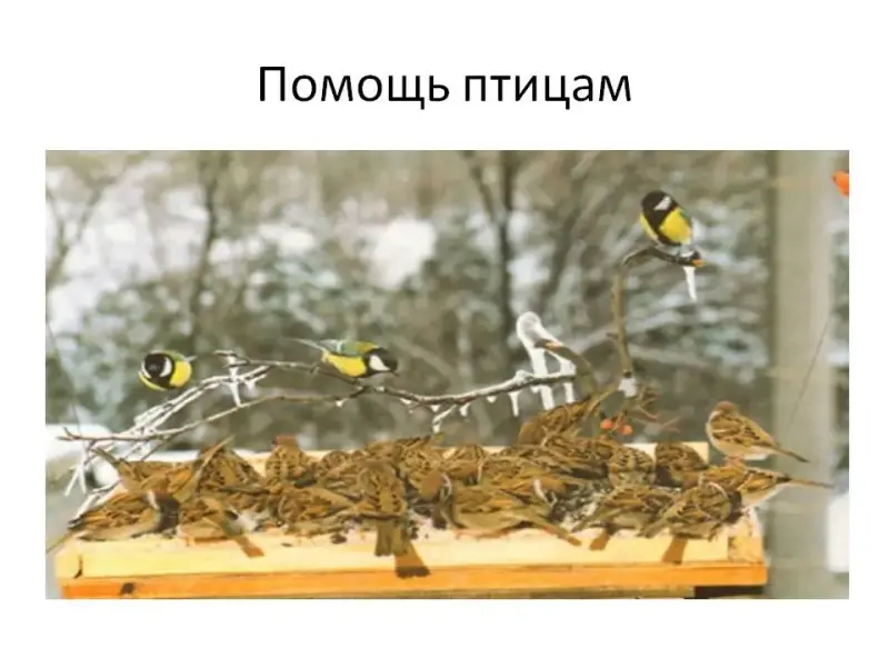В голодное время надо подкармливать птиц. В засушливое - ставить поилки. Насыплешь крупы и семечек - сейчас же слетятся голуби, воробьи, синицы. Положишь кисти рябины и клюкву - появятся снегири. Птицы зимой все клюют: крошки, крупу, ягоды, семечки, косточки с мясом, обрезки сала. С утра и до вечера у кормушки суета. Весной надо развешивать скворечники для скворцов, синичники для синиц, дуплянки для всех других птиц. Водопои можно делать из противней, корытцев. Птиц надо беречь.