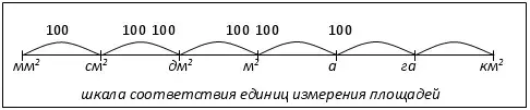 …Вы заметили, что каждая следующая единица измерения площади в 100 раз больше предыдущей на нашей шкале?