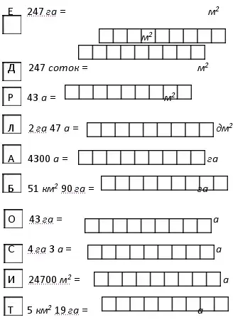 - закрепить навыки перевода одних единиц измерения площадей в другие;