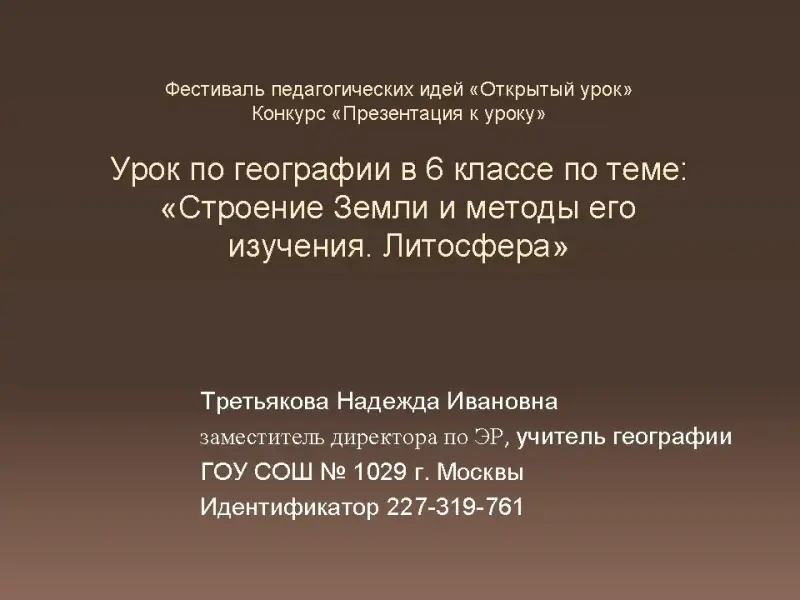 Урок географии по теме "Строение Земли и методы его изучения. Литосфера". 6-й класс