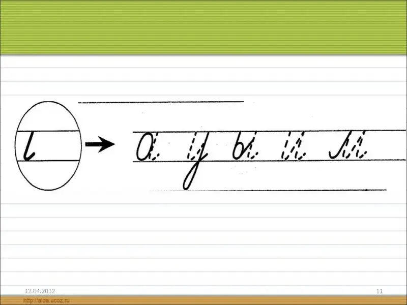 - Как называется элемент, выделенный пунктиром во всех буквах? (Полоска в форме прямой линии с закруглением с одной стороны).
