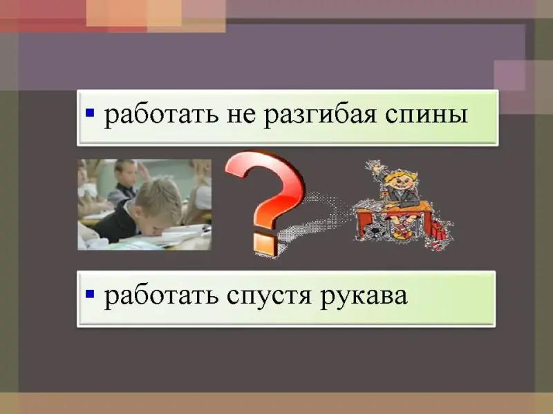 Ученик: Работать, не разгибая спины, то есть очень много, старательно.