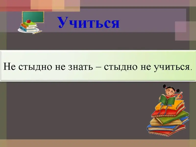 Учитель: Со вторым глаголом в шифрограмме связано много пословиц. Какие пословицы вы знаете с глаголом учиться? А как вы понимаете пословицу: «Не стыдно не знать - стыдно не учиться».