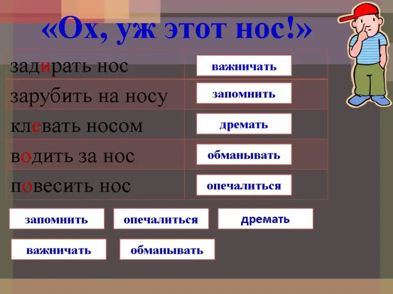 Учитель: Вы правильно, заменили словосочетания глаголом, кто знает, откуда пришло выражение «зарубить себе на носу»?