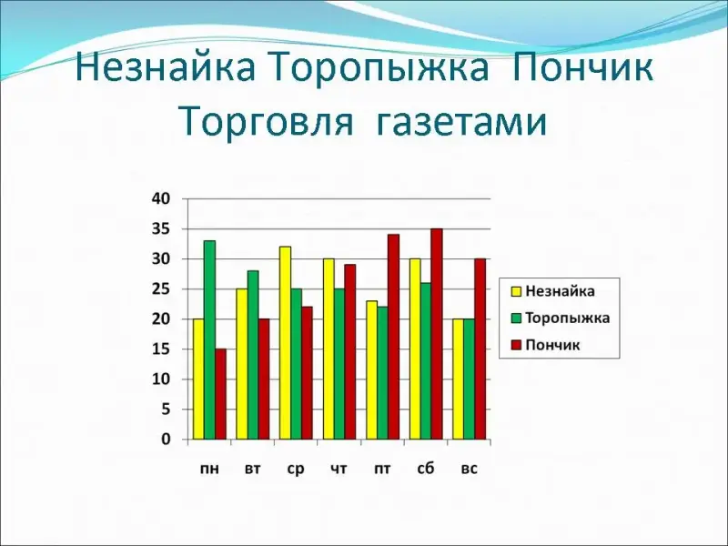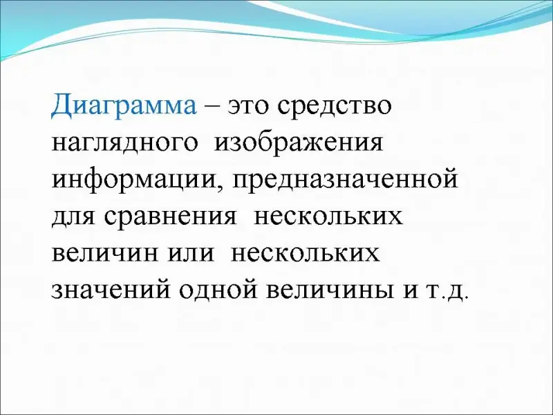 А вот с чем, вы узнаете позже. 1. Как называются данные чертежи? (примеры круговых и столбчатых диаграмм). 2. Какое название имеет каждая из этих диаграмм? Правильное название второй диаграммы в виде прямоугольников - это столбчатые диаграммы. И тема сегодняшнего урока «Столбчатые диаграммы». 3. А что такое диаграмма? (через фронтальную работу с классом учитель подводит учащихся к научному понятию диаграммы) Диаграмма - это средство наглядного изображения информации, предназначенной для сравнения нескольких величин или нескольких значений одной величины и т.д. 4. Как вы думаете, где и для чего они используются? |