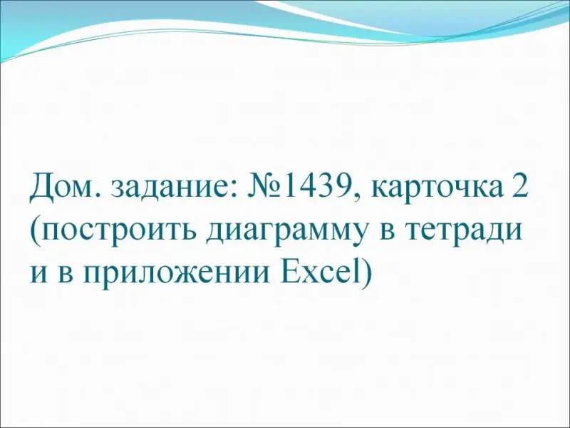 №1437(б), №1439. Карточка 2 (построить диаграмму в тетради и в приложении Excel) | Знакомятся с домашним заданием, записывают в дневник |