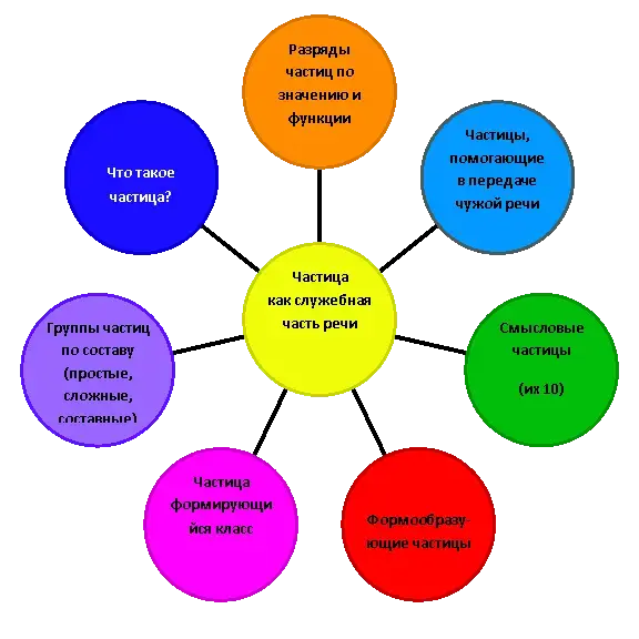 Сбор теоретической информации о частице как служебной части речи через самостоятельное чтение теоретического материала и оформление кластера (схемы).