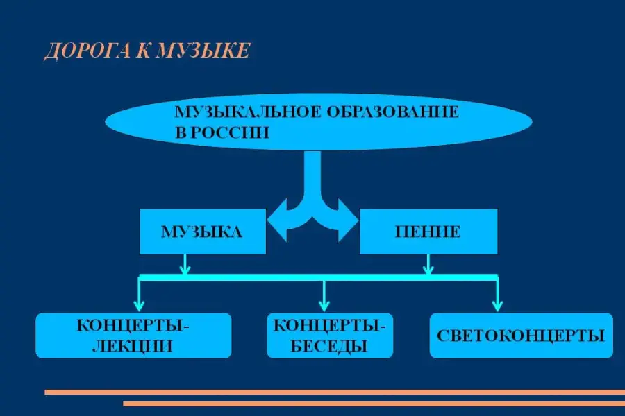 Музыкальное образование в России 19-го века в качестве обязательного компонента входило в общую систему воспитания. Пению обучали во всех учебных заведениях. В гимназиях к нему добавлялся предмет «Музыка», предполагавший знакомство учащихся с музыкальным инструментом; музыка становилась для них частью духовной жизни. В 20-м столетии, в послереволюционные годы задача музыкального просвещения и воспитания приобретает особую актуальность. Концерты-лекции, концерты-беседы становятся с того времени одной из основных форм приобщения публики к интересу и пониманию сложной классической музыки. В 60-70-х годах 20-го века получили известность светоконцерты.