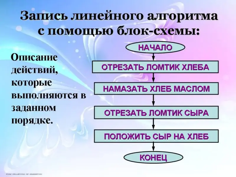 А теперь давайте попробуем вместе с вами составить алгоритм приготовления бутерброда с маслом и сыром.