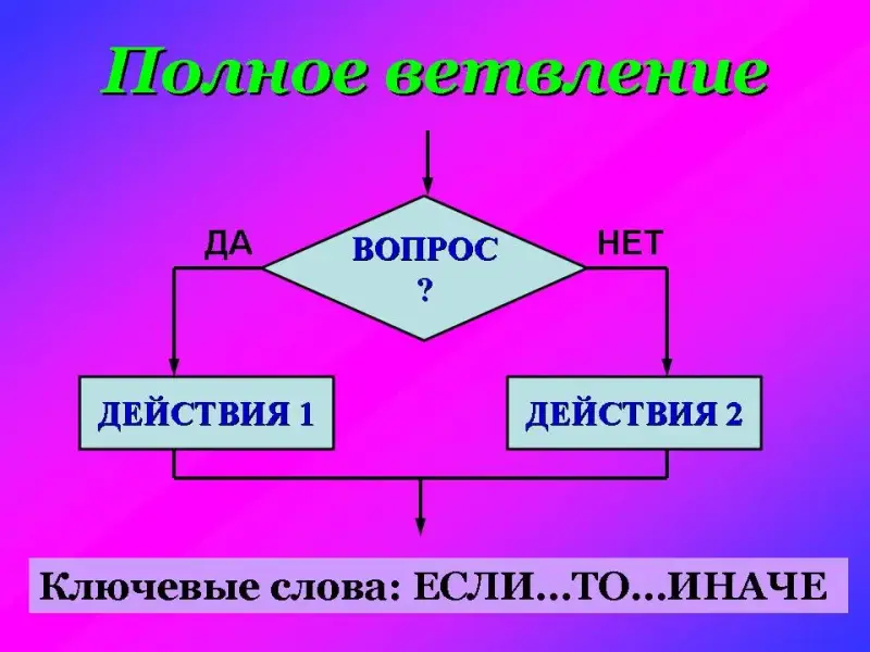 Итак, давайте обобщим. Ветвлением называется следующая схема.