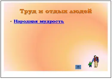 Раздел «Народная мудрость» посвящен приметам, связанным с православным календарем, пословицам и поговоркам, расписанным в русском народном календаре [см. Приложение 9].