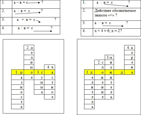 Учитель: Здравствуйте дети. Сейчас я раздам вам карточки. На каждой, половинка фигуры, найдите другую половинку - это ваш партнёр на сегодняшний урок. Разбились на пары. Сели. Учитель раздает тетради.