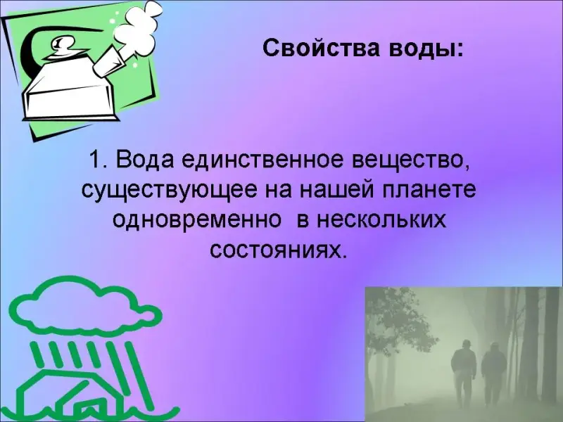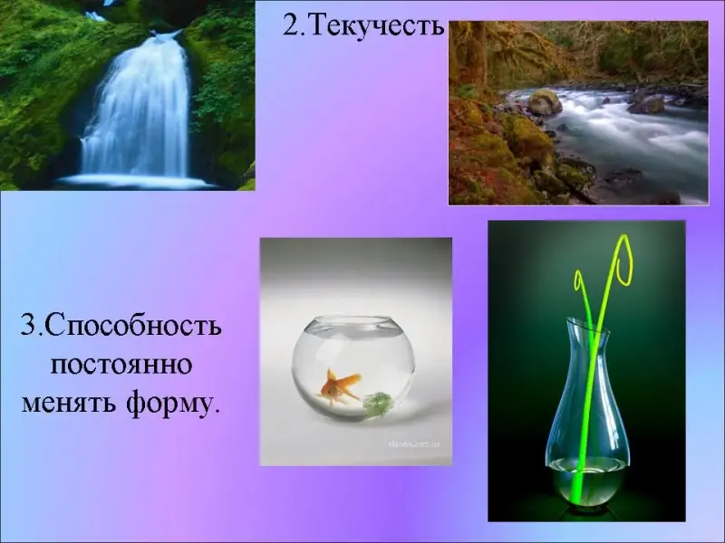 Стоят 4 стакана, 2 из них с водой. Как, не переставляя стакана сделать так, чтобы стаканы с водой чередовались? Перелить. Это доказывает ещё одно свойство воды. Текучесть.