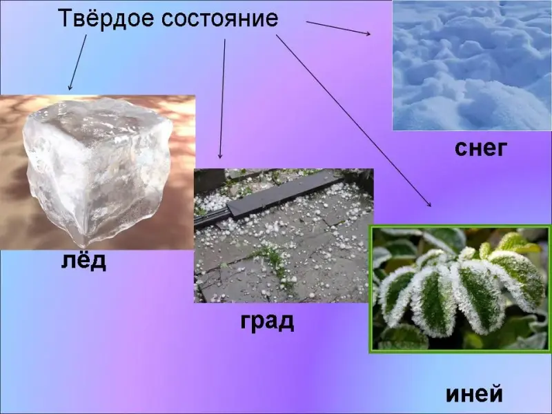 Третье состояние воды - твёрдое, определим решив уравнения. (Уравнения закреплены на доске). (Слайд 9 град, иней, снег, лёд).