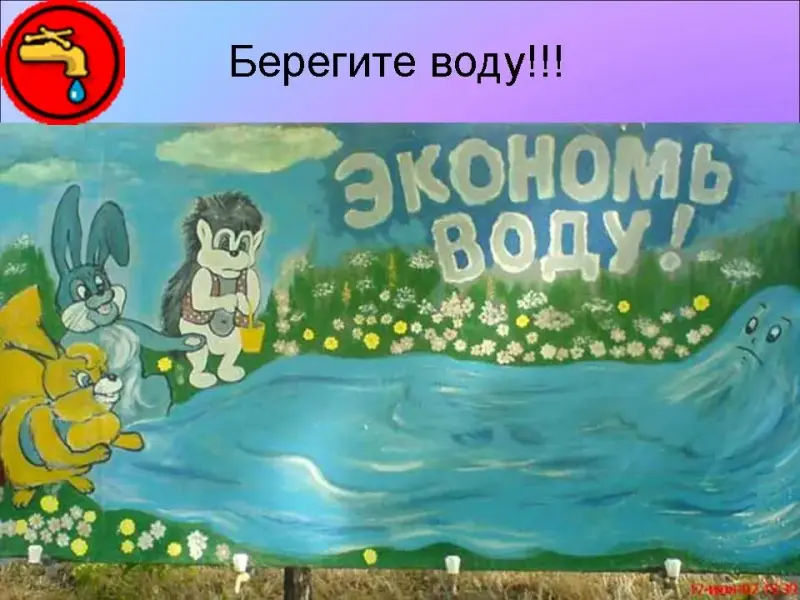 В нашей стране экологические проблемы с водой. Только что мы попали под математический дождь, к сожалению, дожди бывают и кислотными. (Слайд 21).Кислотными они становятся благодаря людям. К сожалению всё меньше остаётся чистой воды на земле. В большинстве случаев загрязнение пресных вод остаётся невидимым. Люди загрязняют воду: бросают мусор в воду, сливают отходы производства, нефтепродукты, рассыпают удобрения на полях и после дождей нитраты уходят в грунтовые воды, а затем в реки. От грязной воды гибнет рыба, и болеют люди. Мы с вами должны беречь воду и не бросать мусор.