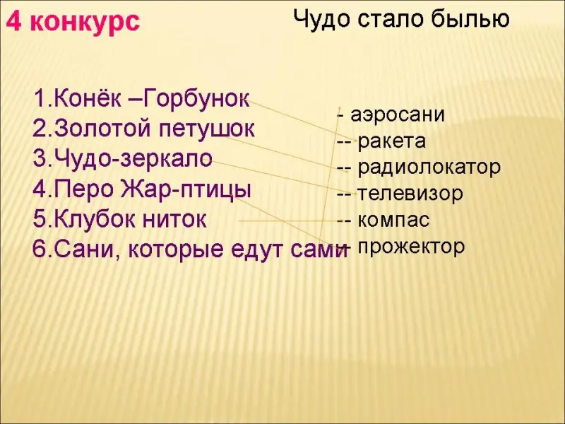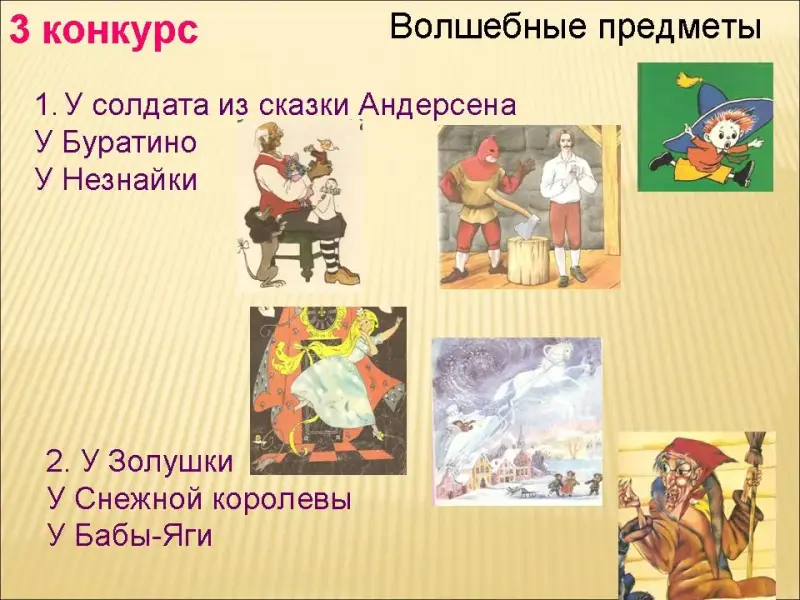 Учитель: Перечислите волшебные предметы и сказки, в которых они встречаются.