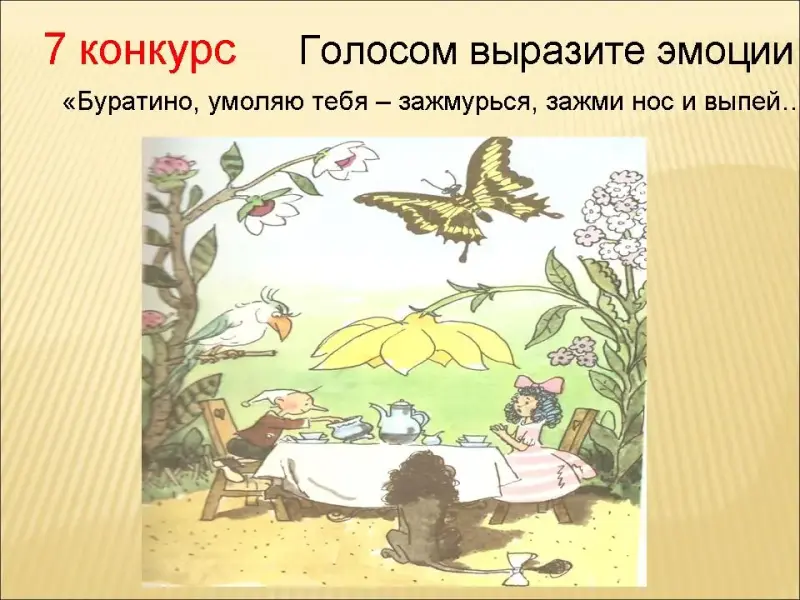 1. Попробуйте голосом выразить радость, грусть, удивление и другие эмоции сказочных героев.