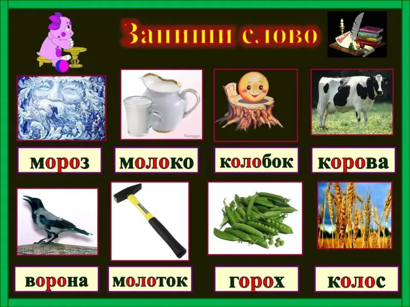 Учитель: (Слайд 13) Следующее задание нам предлагает Лунтик. Перед вами картинки. Ваша задача - записать слова. Какие сочетания встречаются в этих словах?