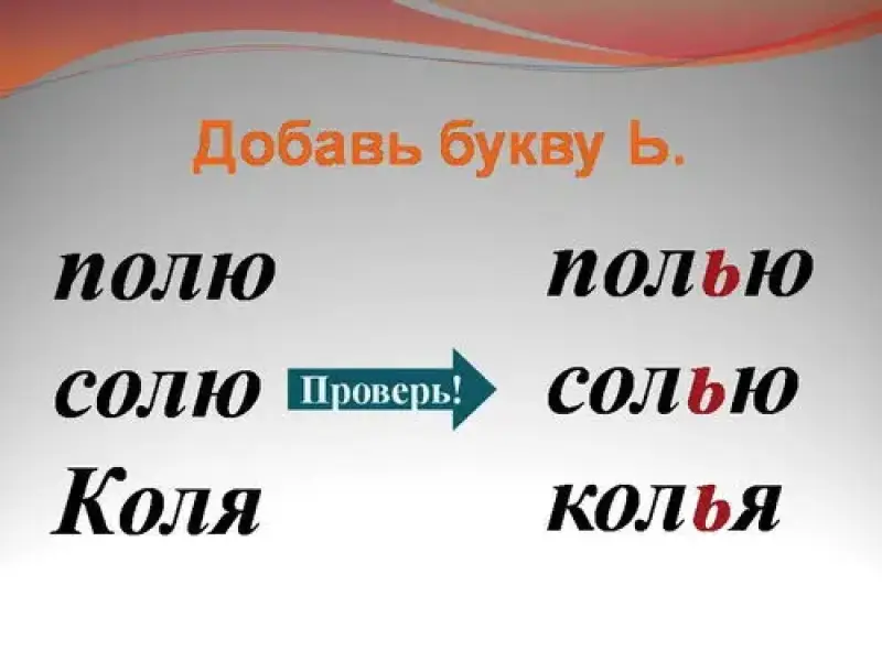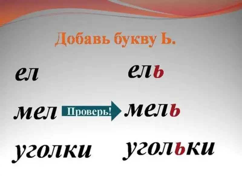 2) Упражнение в распознавании роли мягкого знака.
