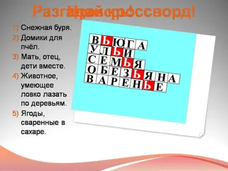 - Разгадайте кроссворд. Впишите в клеточки буквы. Все слова пишутся с мягким знаком.