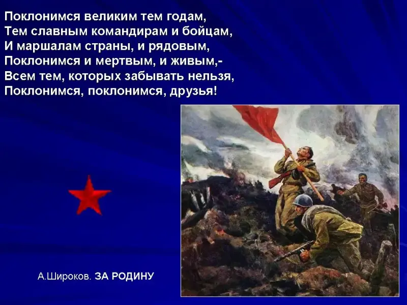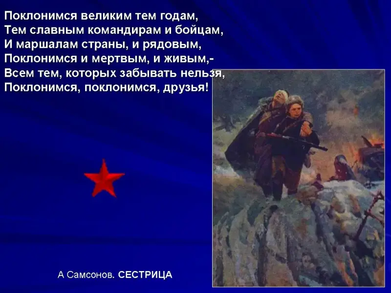 Звучит фрагмент песни "Поклонимся великим тем годам…".