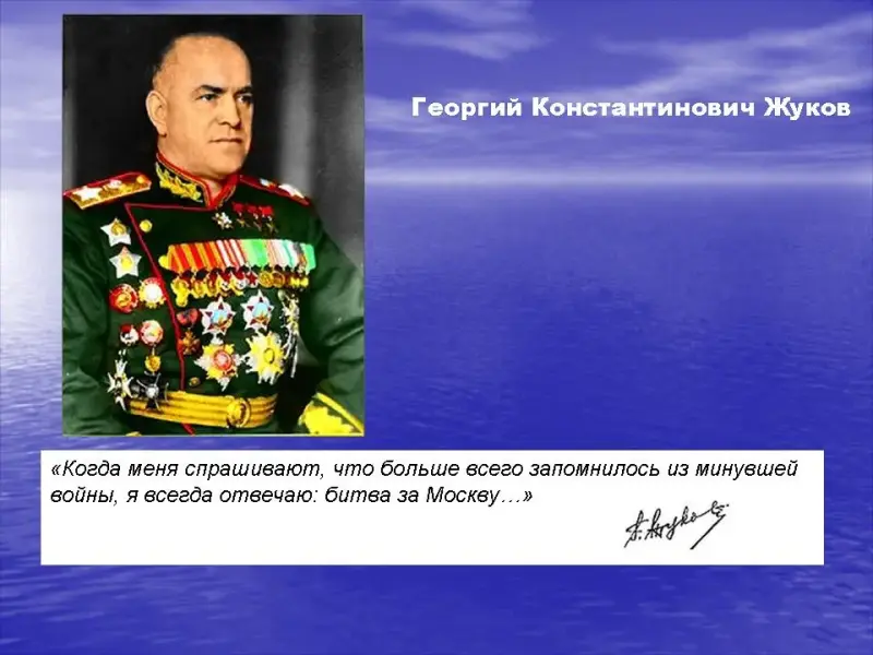Когда меня спрашивают, что больше всего запомнилось из минувшей войны, я всегда отвечаю: битва за Москву. Г.К. Жуков