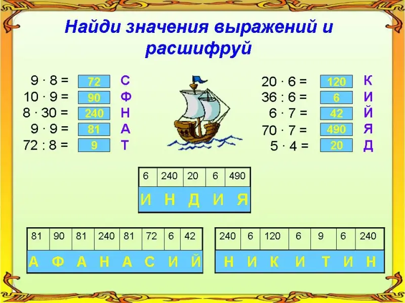 - Наш математический корабль держит путь к одному из красивейших Индийских храмов, который люди назвали одним из 7 чудес света. Но чтобы его увидеть, нам необходимо найти значение этих выражений.