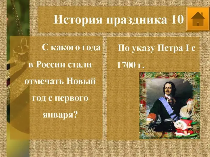 Новогодний праздник - один из самых древних праздников. Принято считать, что родиной праздника является Междуречье (Месопотамия). В древности Новый год чаще всего связывался с весной - началом возрождения природы и ожиданием нового урожая. На Руси Новый год отмечали 1 марта. И только специальным указом Петра I с 1700 года "впредь лета исчислять" стали 1 января.
